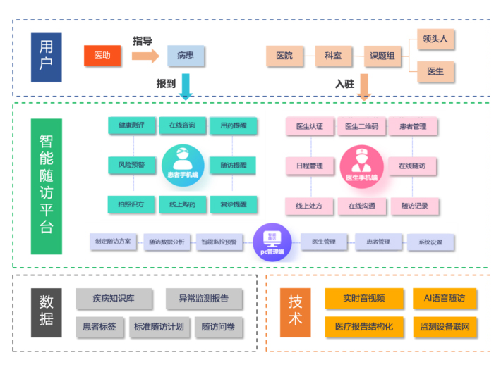 天坦智能開發(fā)的慢病管理運營服務(wù)是一套完整的心血管隨訪標(biāo)準(zhǔn)體系,配合適用性極強(qiáng)的醫(yī)生端可配置界面,滿足絕大多數(shù)開展冠心病介入的醫(yī)療機(jī)構(gòu)需求,同時,基于專家隨訪團(tuán)隊之間的協(xié)作,建立上下聯(lián)動的醫(yī)生互動機(jī)制,為隨訪的患者提供專業(yè)的管理方案。匹配有人工智能為核心的隨訪管理機(jī)制,可自動化發(fā)送患者所需要信息,量表等隨訪內(nèi)容,具備機(jī)器學(xué)習(xí)功能,針對不同醫(yī)院形成不同模式的隨訪系統(tǒng)配置,匹配個性化的醫(yī)院隨訪體系,最終以患者交流平臺,建立以患者需求為中心的線上服務(wù)體系,包括專家線上咨詢、藥品直送、可穿戴式設(shè)備居家監(jiān)護(hù)、護(hù)理居家康復(fù)及圍繞手術(shù)全周期的保險支付產(chǎn)品。形成以醫(yī)學(xué)+智能+個性化+支付功能為一體的新一代的慢病管理平臺。