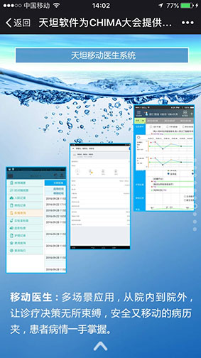 通過(guò)這樣一年一度高規(guī)格的國(guó)家級(jí)盛會(huì),加強(qiáng)了移動(dòng)醫(yī)療行業(yè)的交流與合作,推動(dòng)了移動(dòng)醫(yī)療產(chǎn)業(yè)健康可持續(xù)發(fā)展。同時(shí)激勵(lì)著天坦軟件要為移動(dòng)醫(yī)療做出更大的貢獻(xiàn),正如與會(huì)專家對(duì)天坦軟件的評(píng)價(jià)一樣 “渴了就喝天坦特供水,“天然、健康、安全、解渴”的產(chǎn)品,才是好產(chǎn)品”。